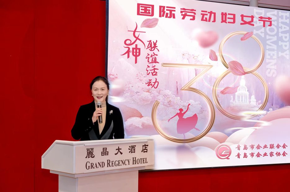 青島皇家美孚食品有限公司總經(jīng)理姜耀東為女企業(yè)家們送上節(jié)日祝福。